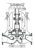 Размер всасывающего фланца на один типоразмер больше, чем на напорном фланце. Линия, соединяющая вход и выход, тангенциально смещена относительно оси вала. В насосах предусмотрено два износостойких кольца рабочего колеса.