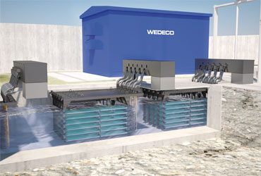 The single enclosure installed across the channel minimizes footprint requirements and contains all electronic components such as ballasts, control, power distribution and the integrated junction box. All connections between systems components are pre-wired in the factory resulting in minimum installation time.