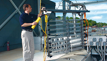 Equipped with superior ECORAY® UV lamps, the WEDECO TAK 55 provides ultraviolet (UV-C) light more efficient than other UV systems. The lamps are powered by the latest electronic ballast technology and controlled by a highly selective calibrated UV intensity sensor. Based on the actual UV dose requirement, the lamp power setting is varied between 50 and 100%, resulting in the lowest power consumption possible.
